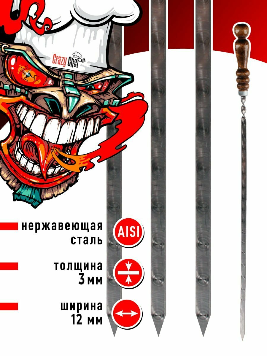 Набор шампуров 62 см 12 штук / Шампуры из нержавеющей стали с деревянной ручкой из бука