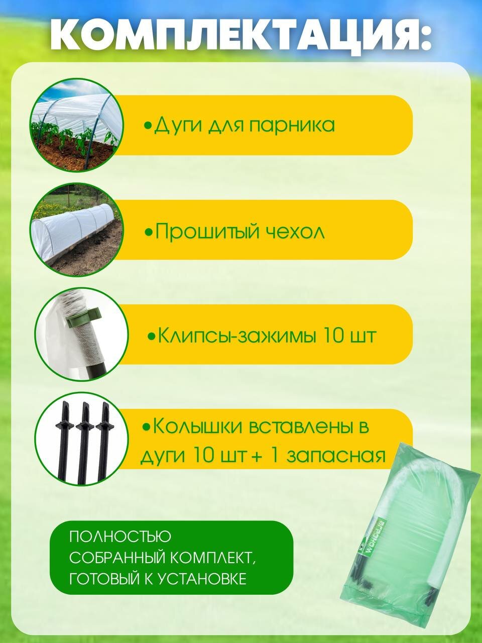 | Комплектация | каркас парника, укрывной материал, клипсы-зажимы 10шт |