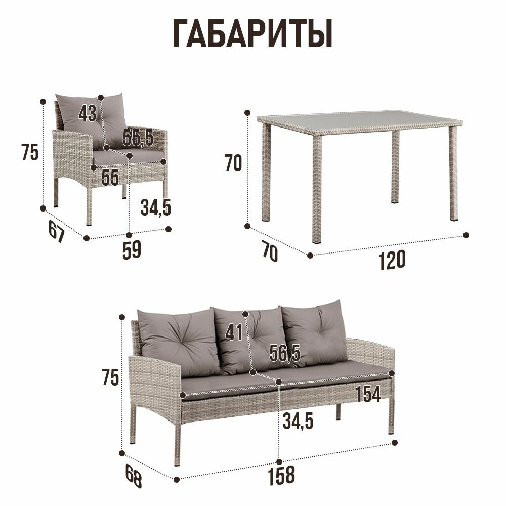 Набор террасной мебели Глория-2 с1195/125 / Обеденный стол / диван / 2 кресла