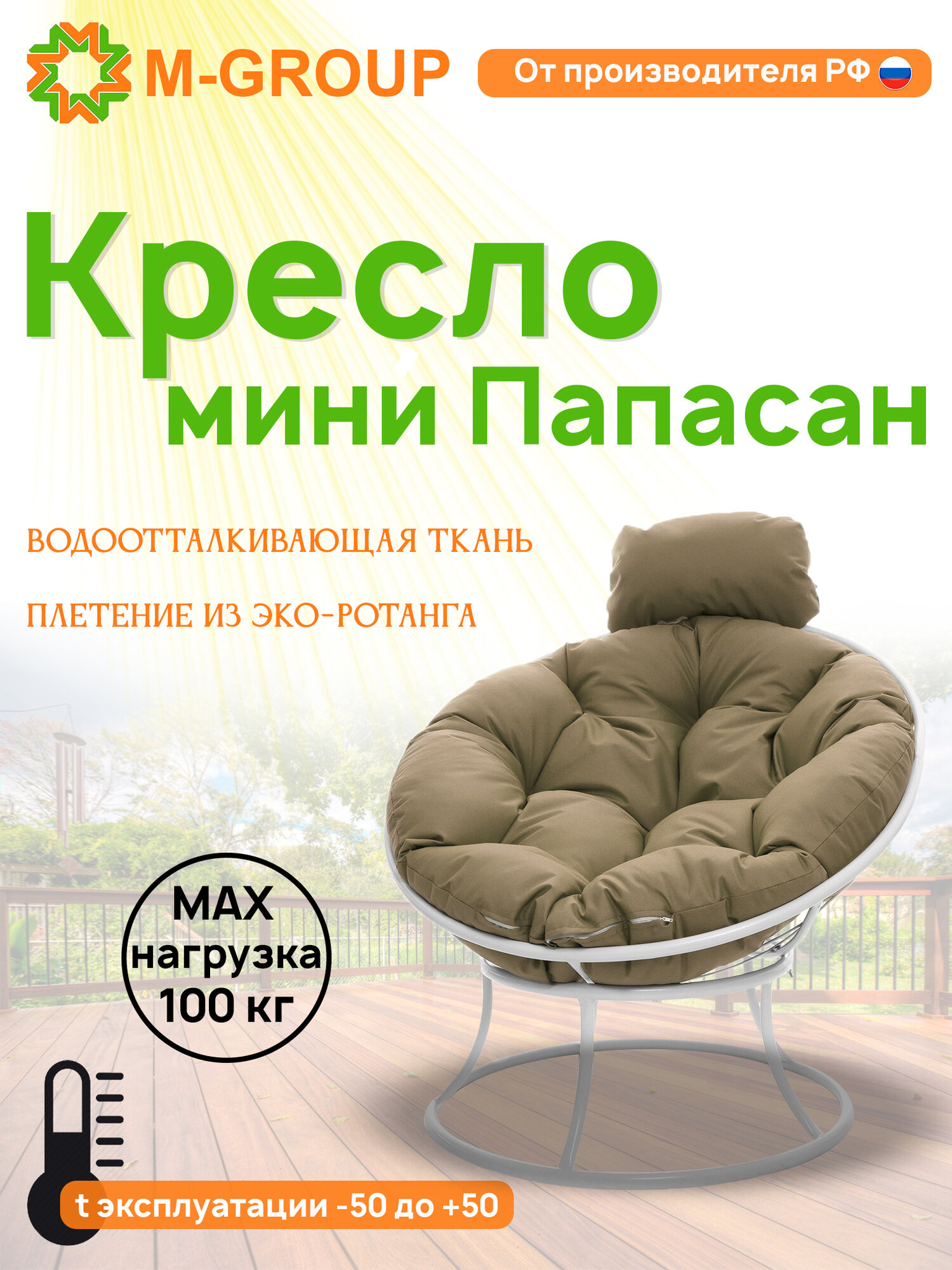 Садовое кресло M-group Папасан мини без ротанга белое + бежевая подушка