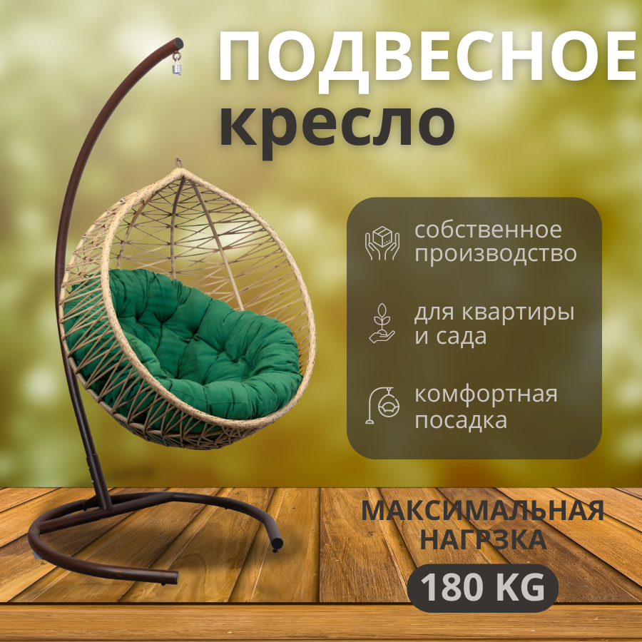 Купить Подвесное кресло бабочки, 100*78*110, бежевое,зеленая подушка