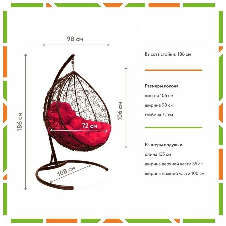 Подвесное кресло «капля» ротанг коричневое/красная интересное: