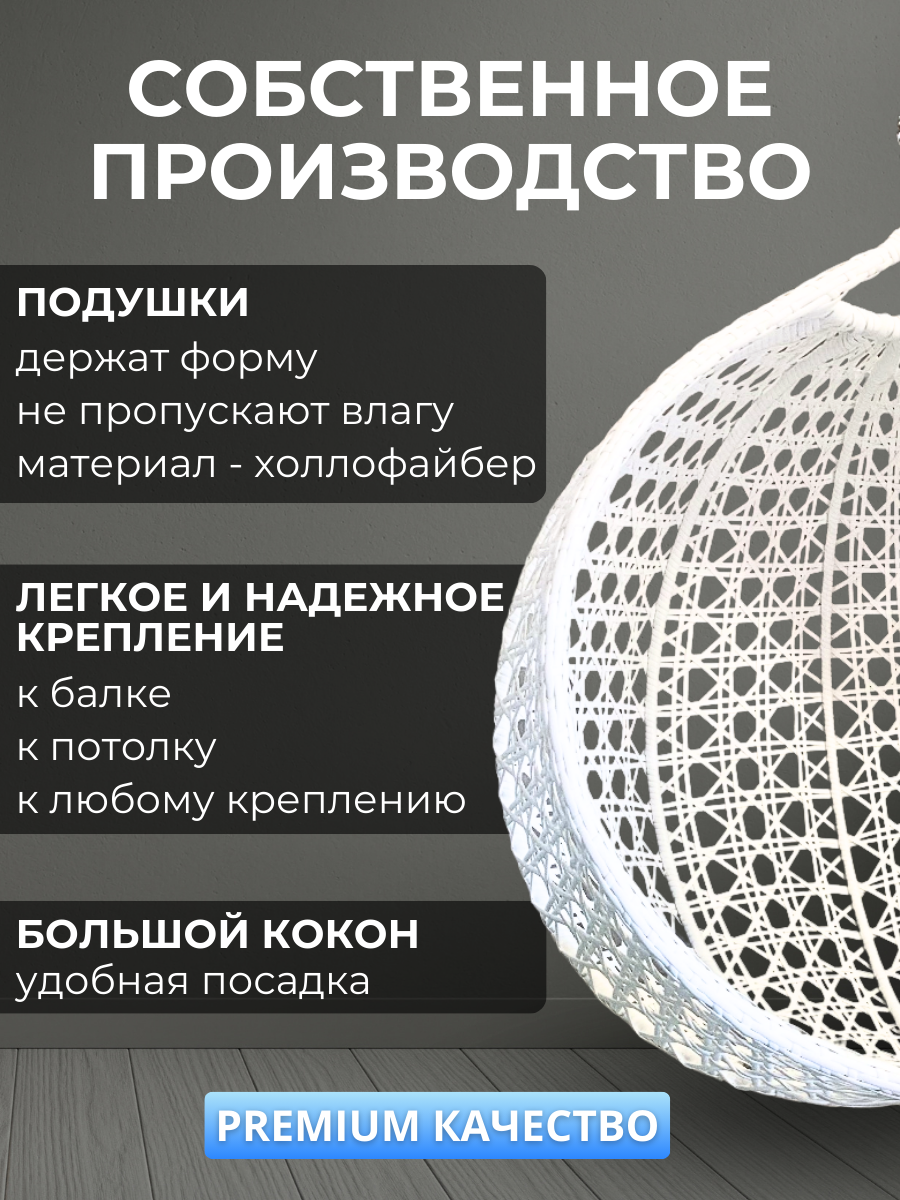 Подвесное кресло кокон,110*78*100см,румбик, белый , графитовая подушка