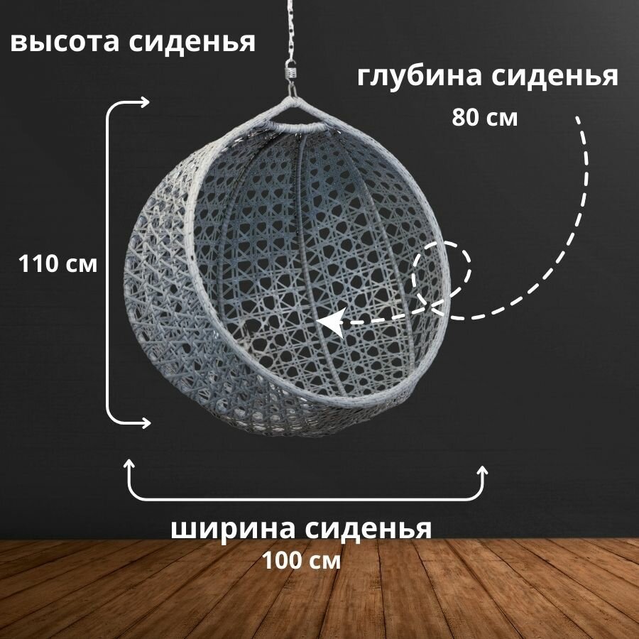 Купить Подвесное кресло кокон,110*78*100см,румбик, серебристый,темно-коричневая подушка