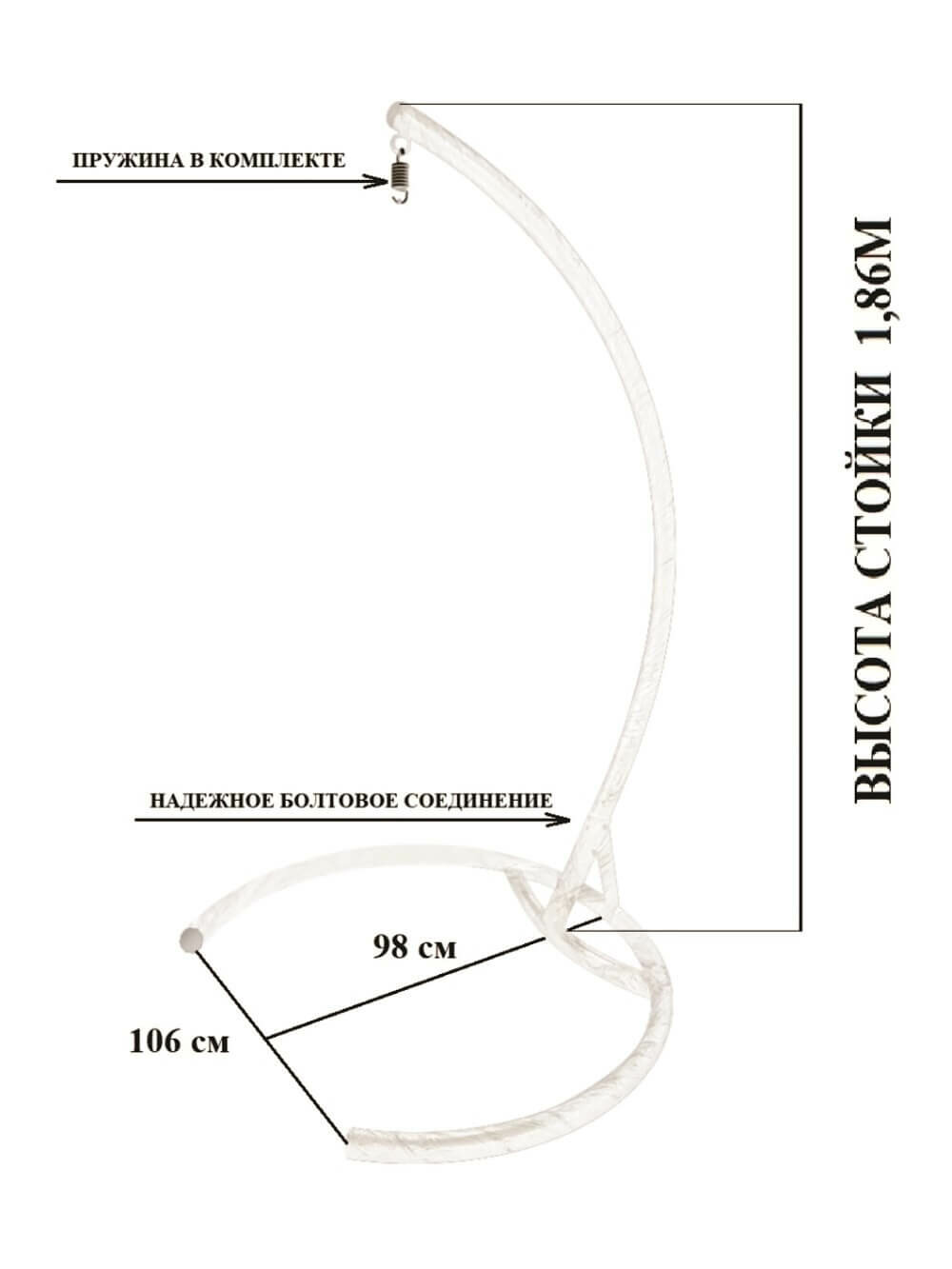 | Комплектация | Кокон-кресло-1шт, подушка-1шт, стойка-1шт, основание-1шт, болт М10х70-2шт, гайка М10-2шт, шайба 10-2шт, пружина-1шт. |