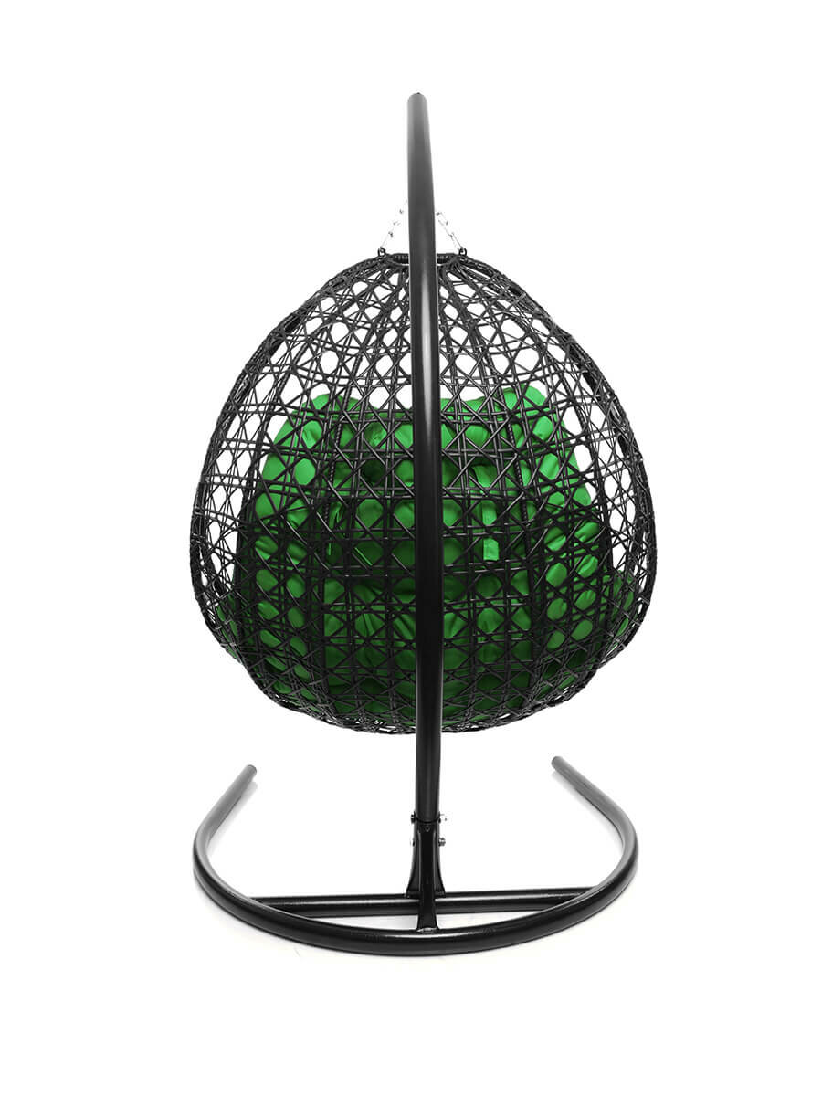 Подвесное кресло с ротангом "Для двоих Люкс" черное с зеленой подушкой M-GROUP