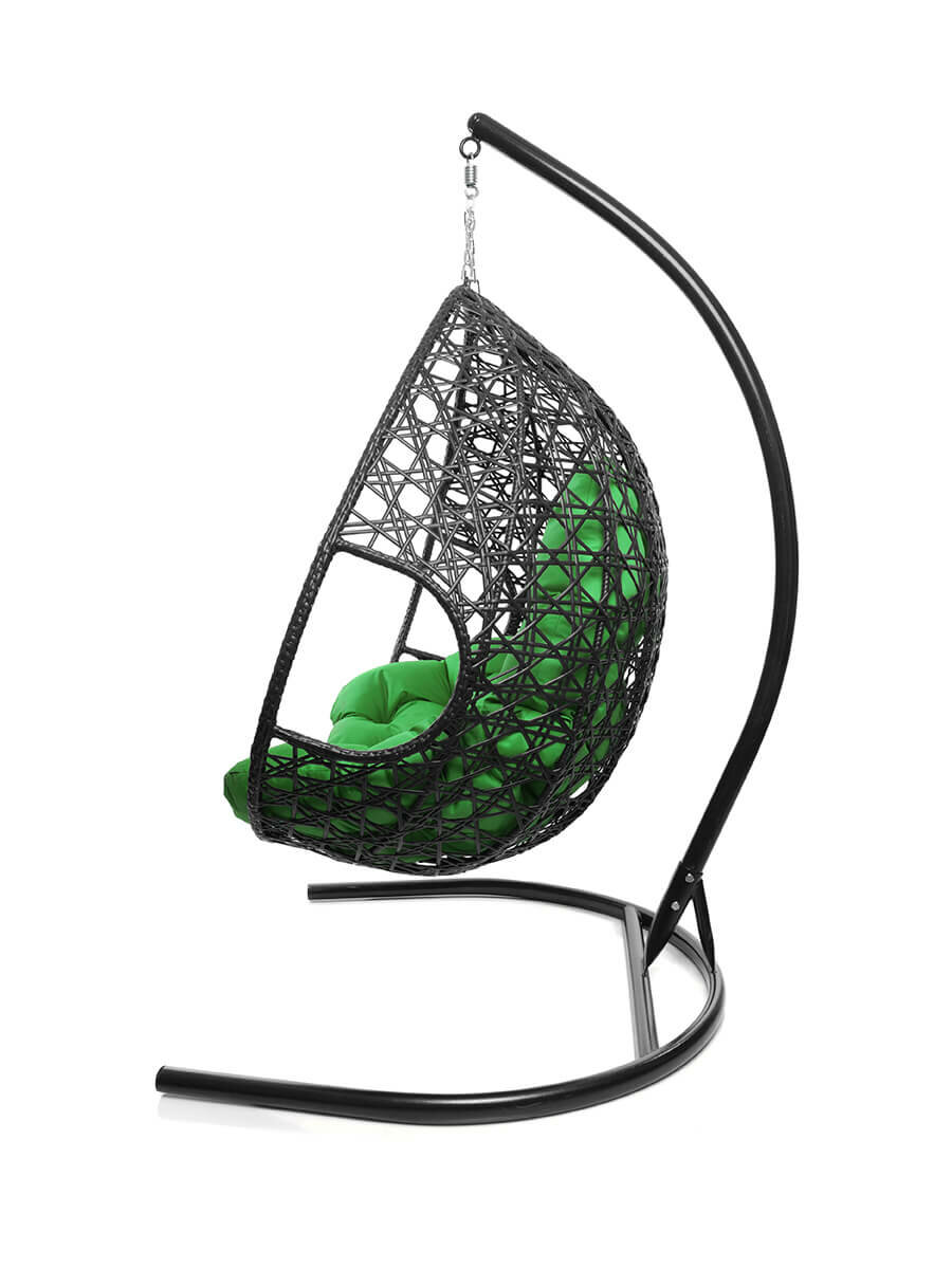Подвесное кресло капля Люкс чёрное, зелёная подушка