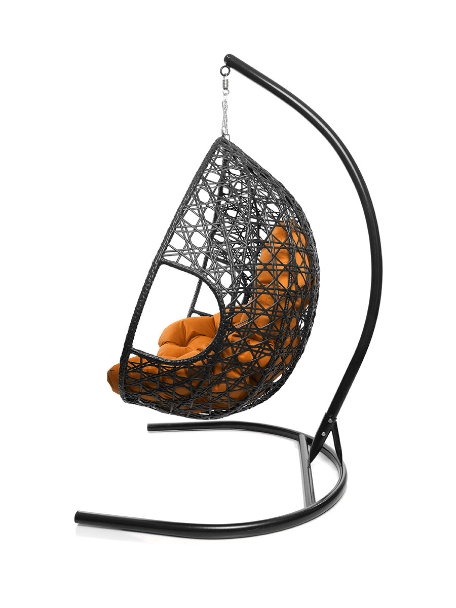 Подвесное кресло капля Люкс чёрное, оранжевая подушка