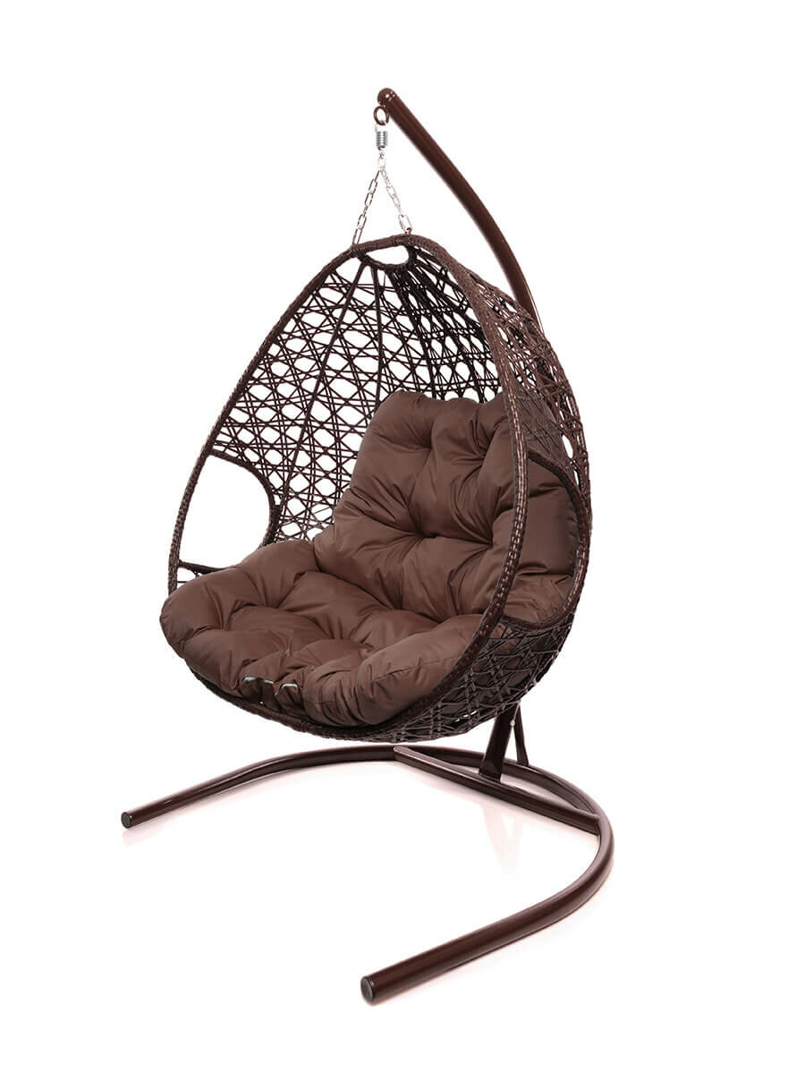 Купить Подвесное кресло с ротангом "Для двоих Люкс" коричневое с коричневой подушкой M-GROUP