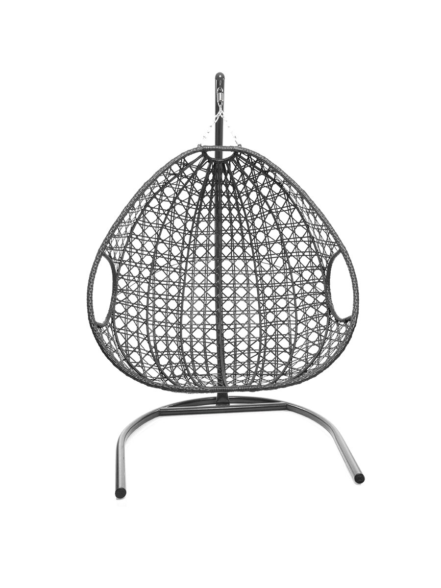 Купить Подвесное кресло - кокон Для двоих Люкс с ротангом серое, коричневая подушка