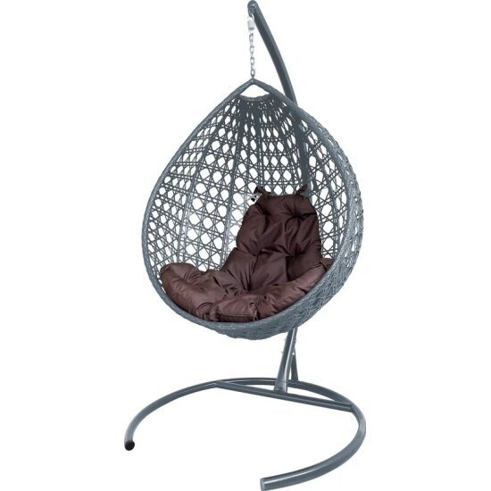 Подвесное кресло капля Люкс коричневое, серая подушка