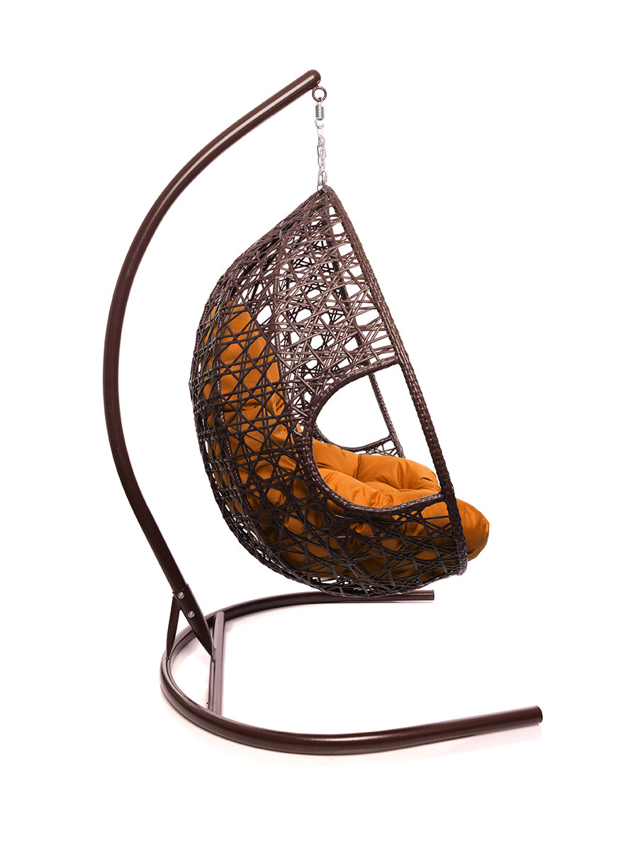 Подвесное кресло капля Люкс коричневое, оранжевая подушка