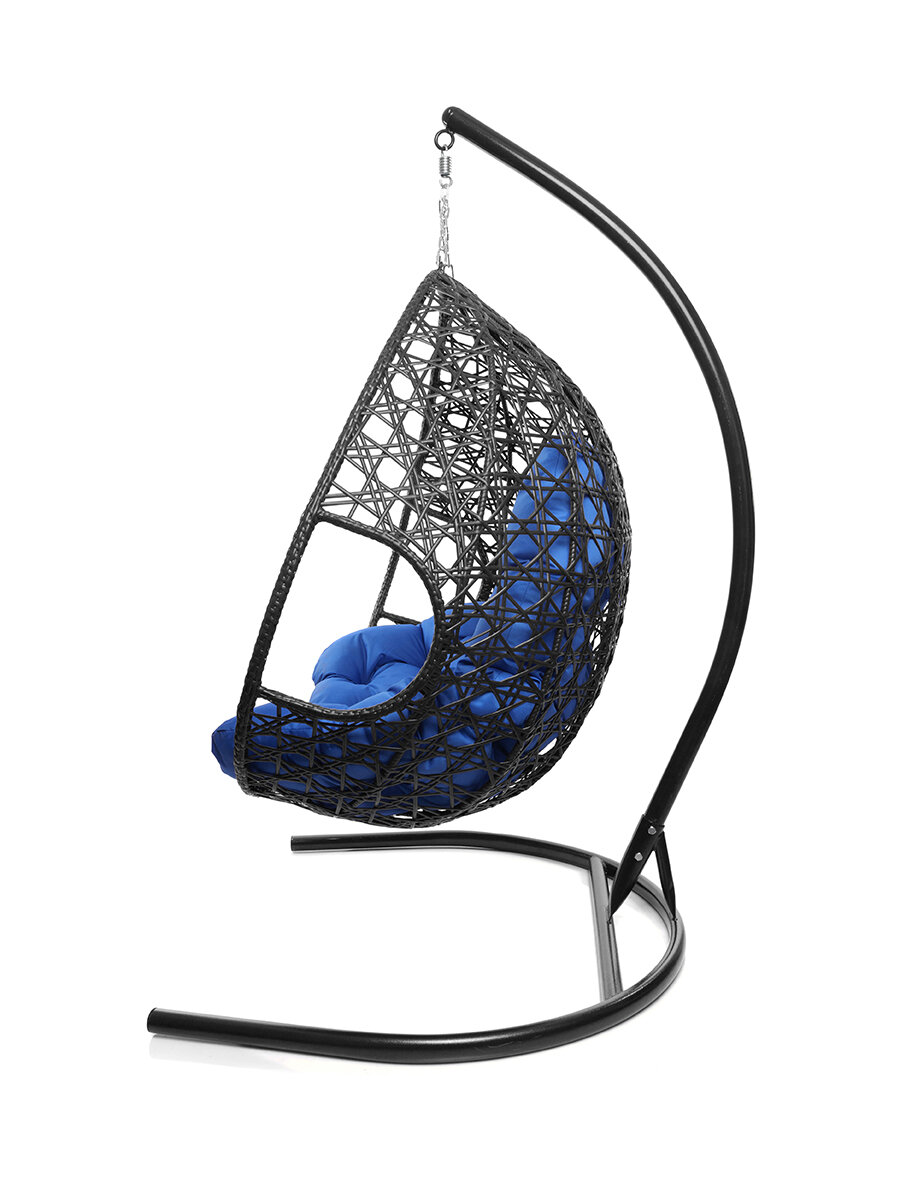 Подвесное кресло капля Люкс чёрное, синяя подушка