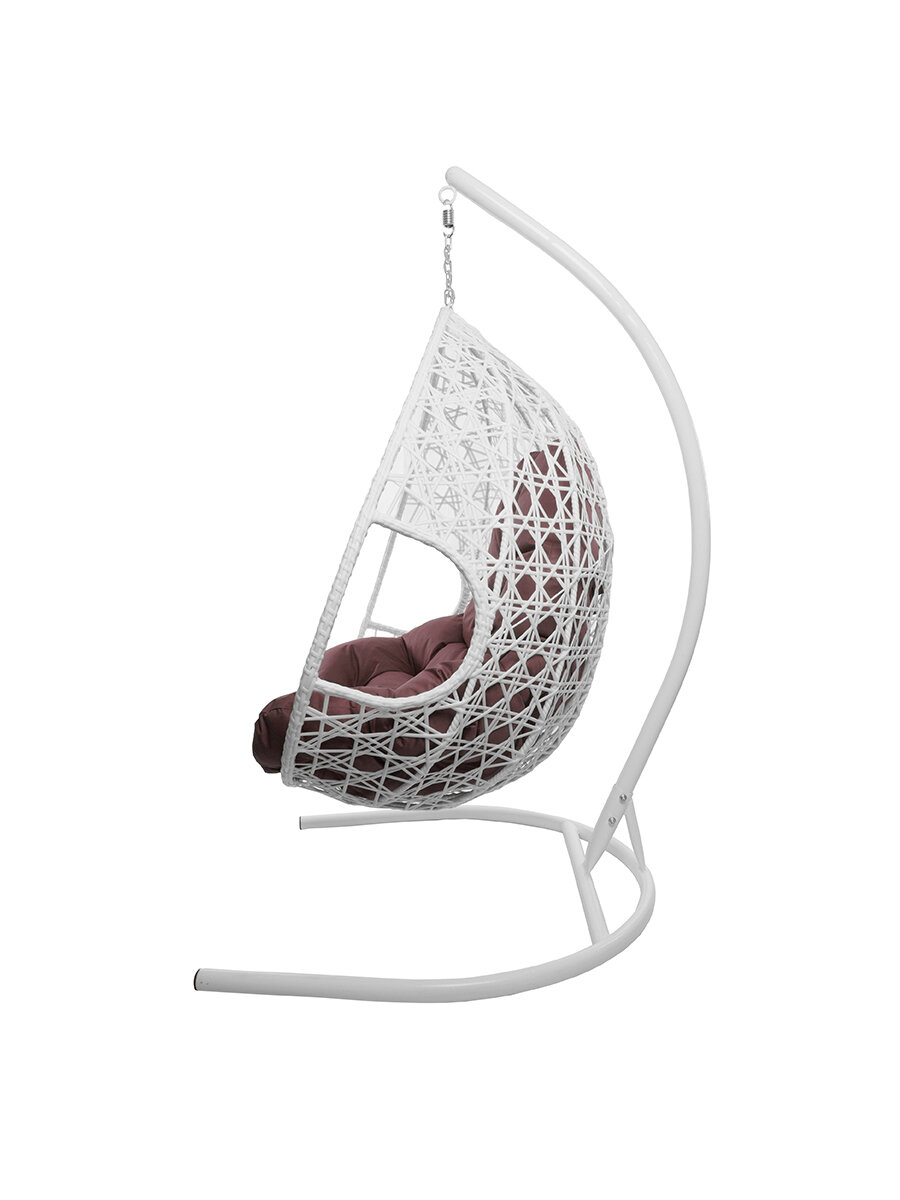 Подвесное кресло капля Люкс белое, бордовая подушка