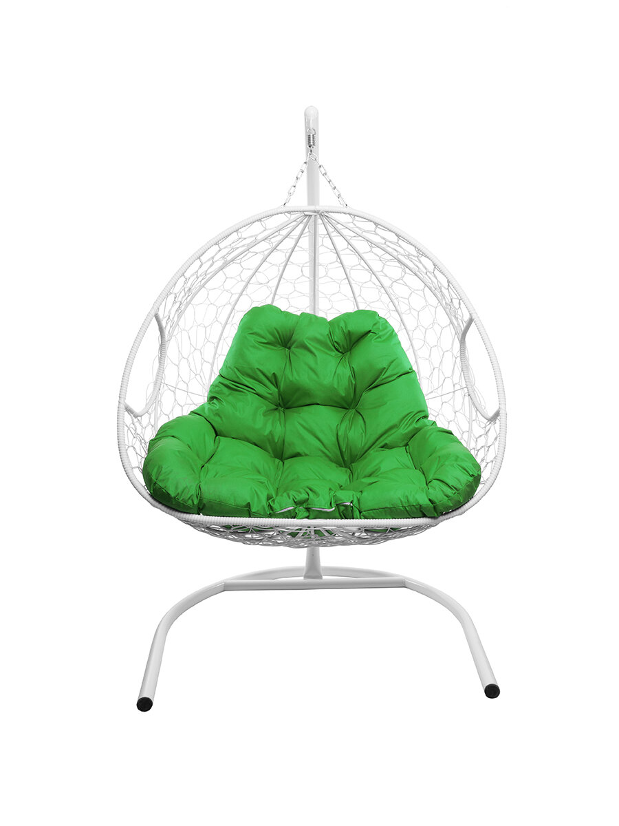 Купить Подвесное кресло M-group для двоих люкс с ротангом белое зелёная подушка