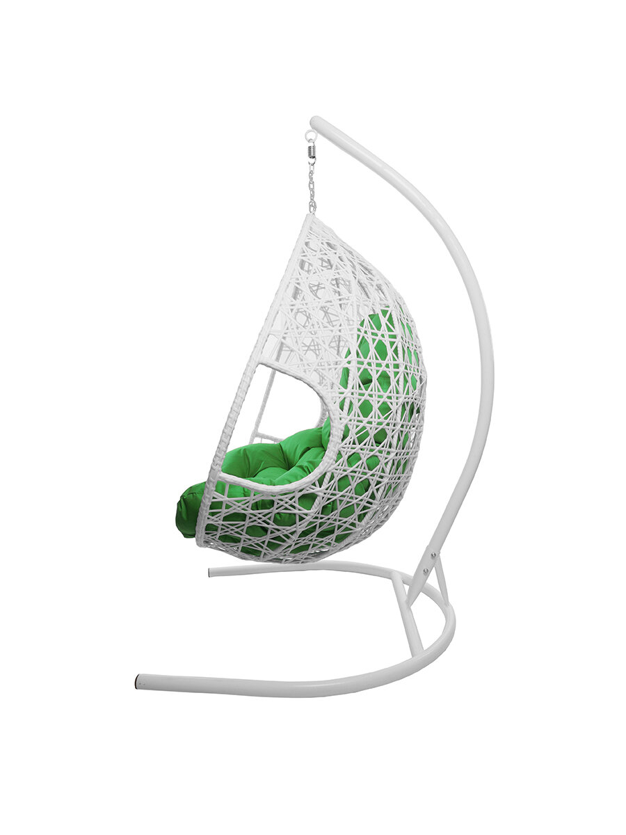 Подвесное кресло капля Люкс белое, зелёная подушка