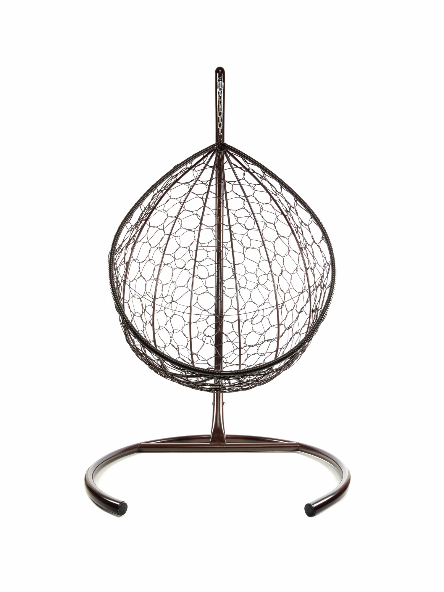 Купить Подвесное кресло Капля складной, с ротангом коричневое, серая подушка