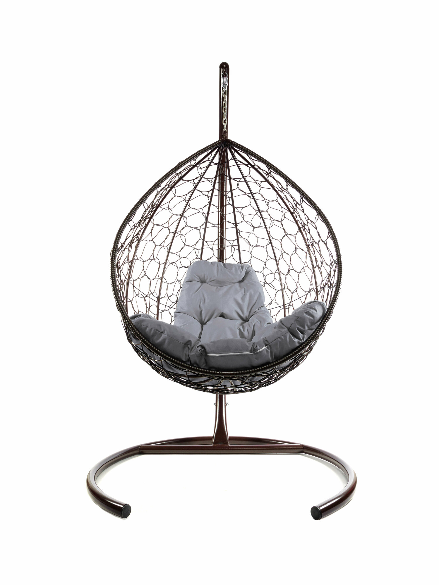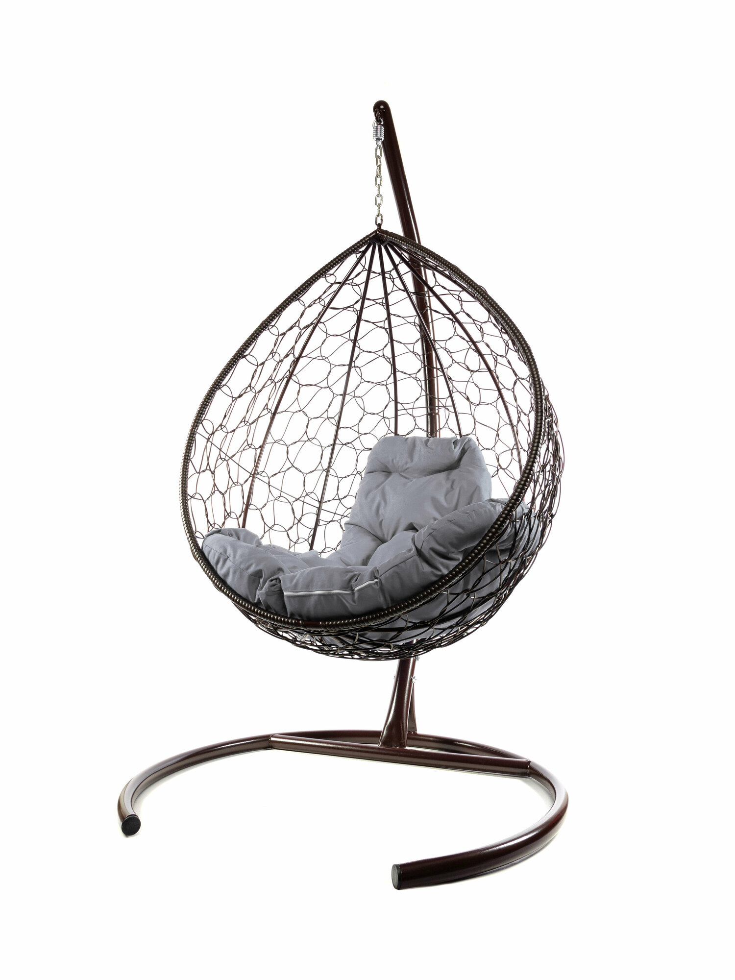 Подвесное кресло Капля складной, с ротангом коричневое, серая подушка интересное: