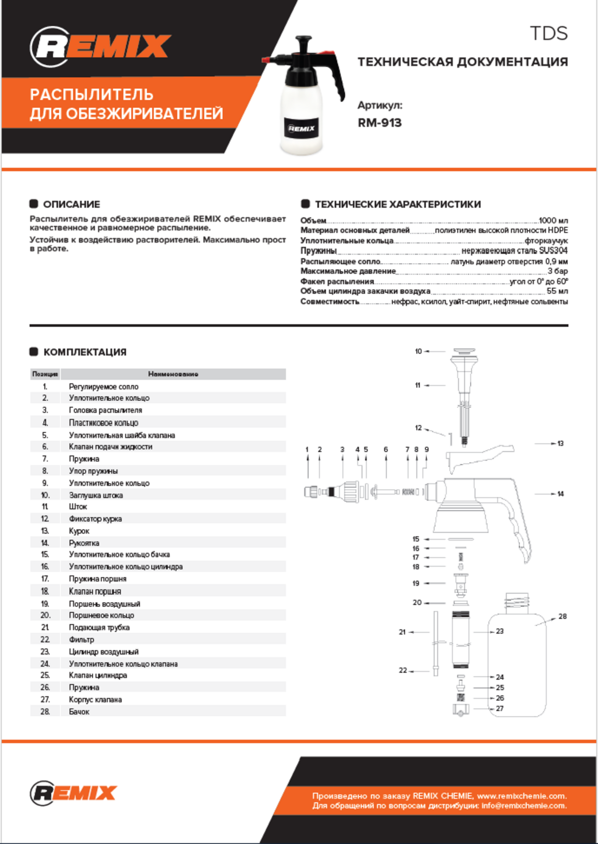 | Комплектация | Распылитель для обезжиривателей REMIX 1 л RM-913 |