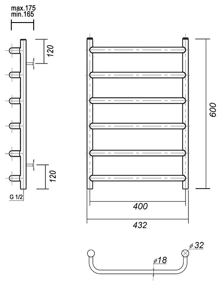 Водяной полотенцесушитель Aquanet Mauro(г2) 800x500