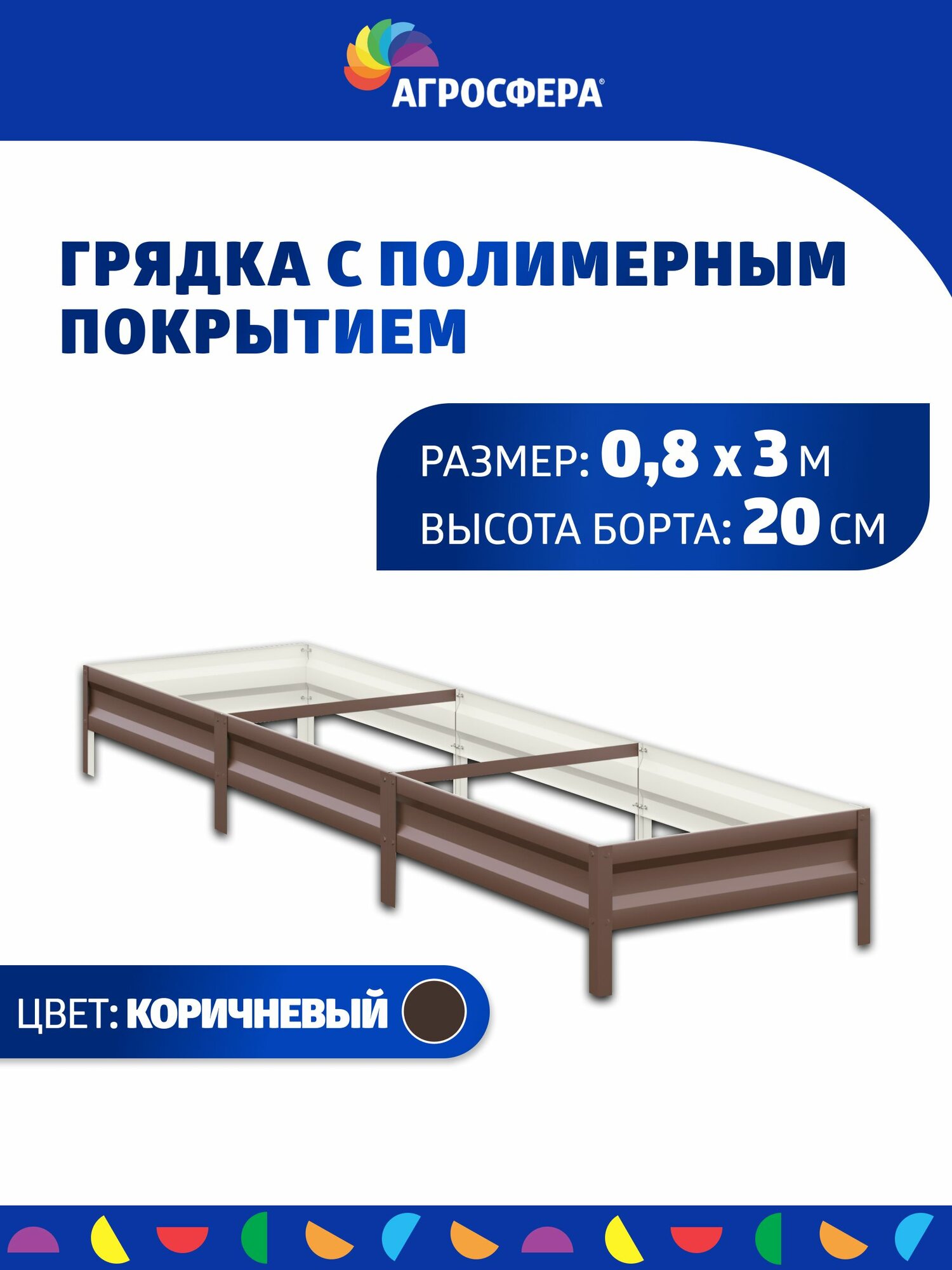 Купить Грядка оцинкованная с полимерным покрытием 0,8 х 3 м, высота 20 см, цвет: коричневый