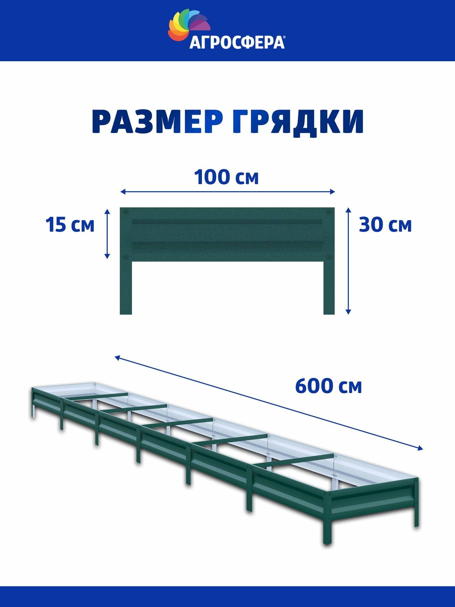 Грядка оцинкованная с полимерным покрытием 1 х 6 м (100 х 600 см), Н: 20 см