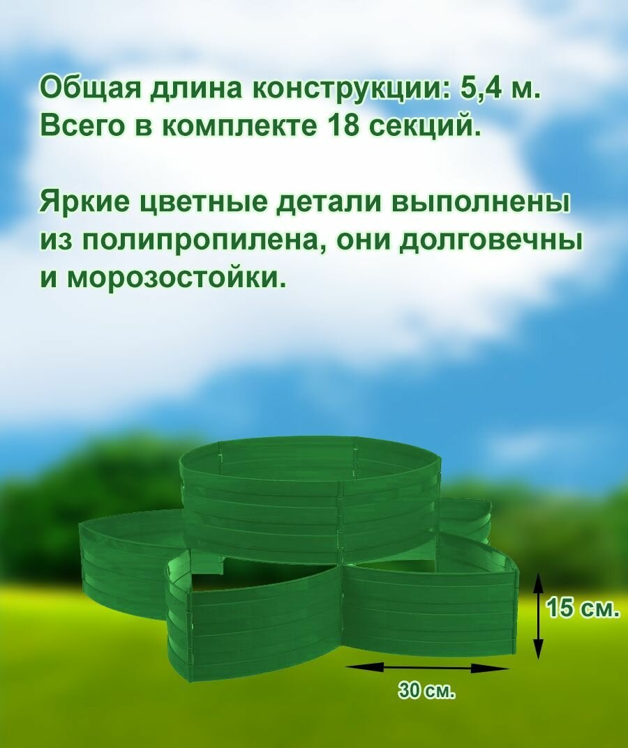 Клумба садовая пластиковая, 15 * 540 см, 18 секций, темно-зеленый, "Конструктор"