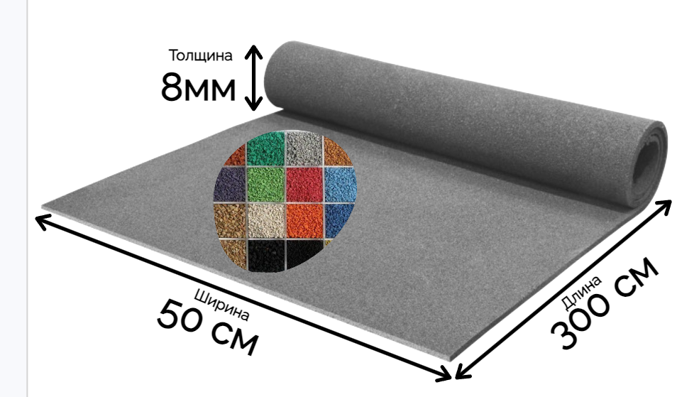 | Подробная комплектация | Саловая дорожка, рулонное напольное покрытие из резиновой крошки |