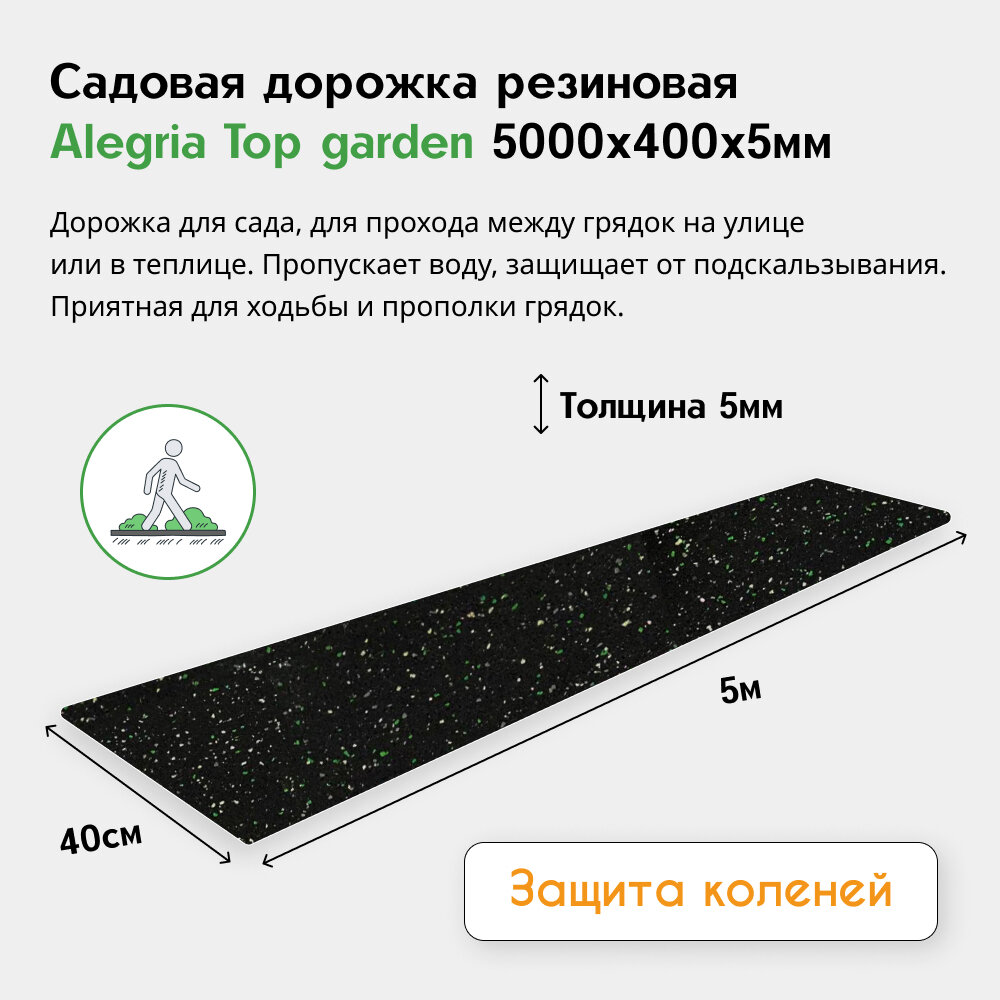 | Дополнительная информация | Садовая дорожка резиновая Alegria Top garden 2500х400х5 мм |