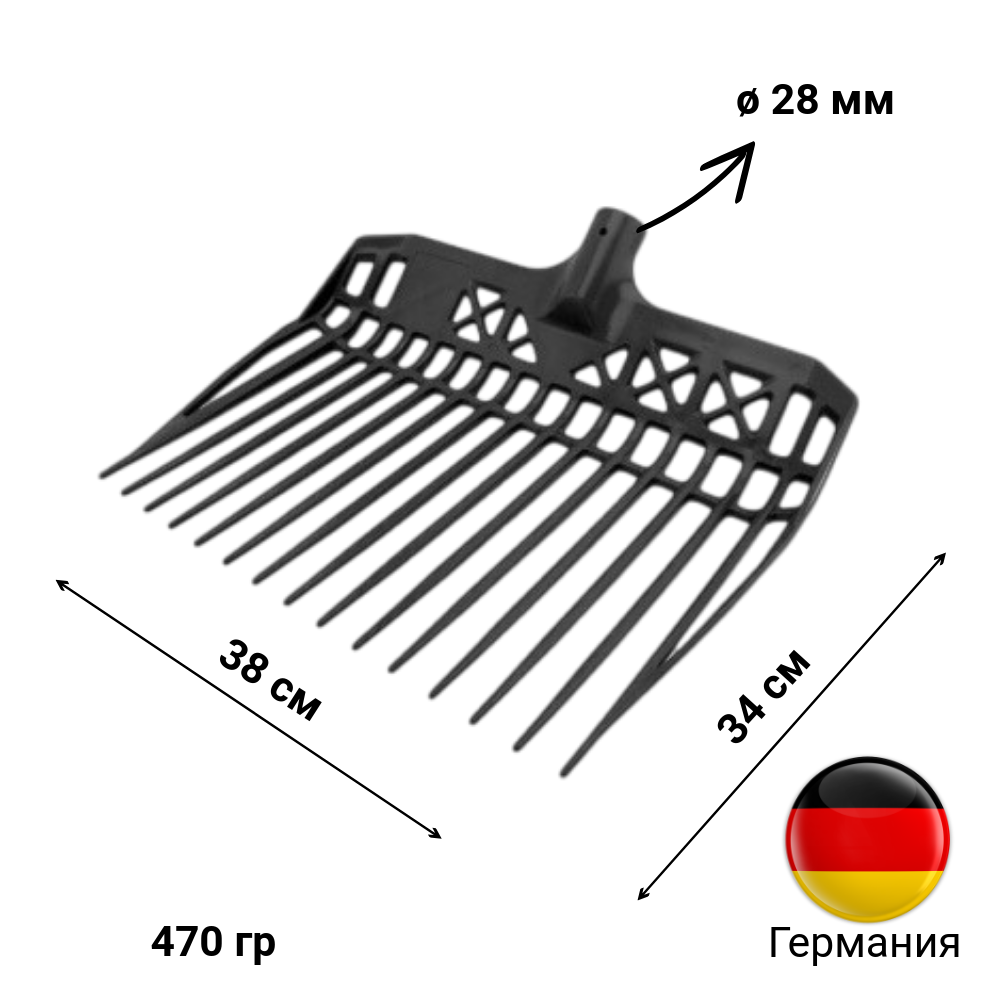 Пластиковые вилы для уборки конюшен, 16 закругленных зубцов, без черенка Suevia интересное: