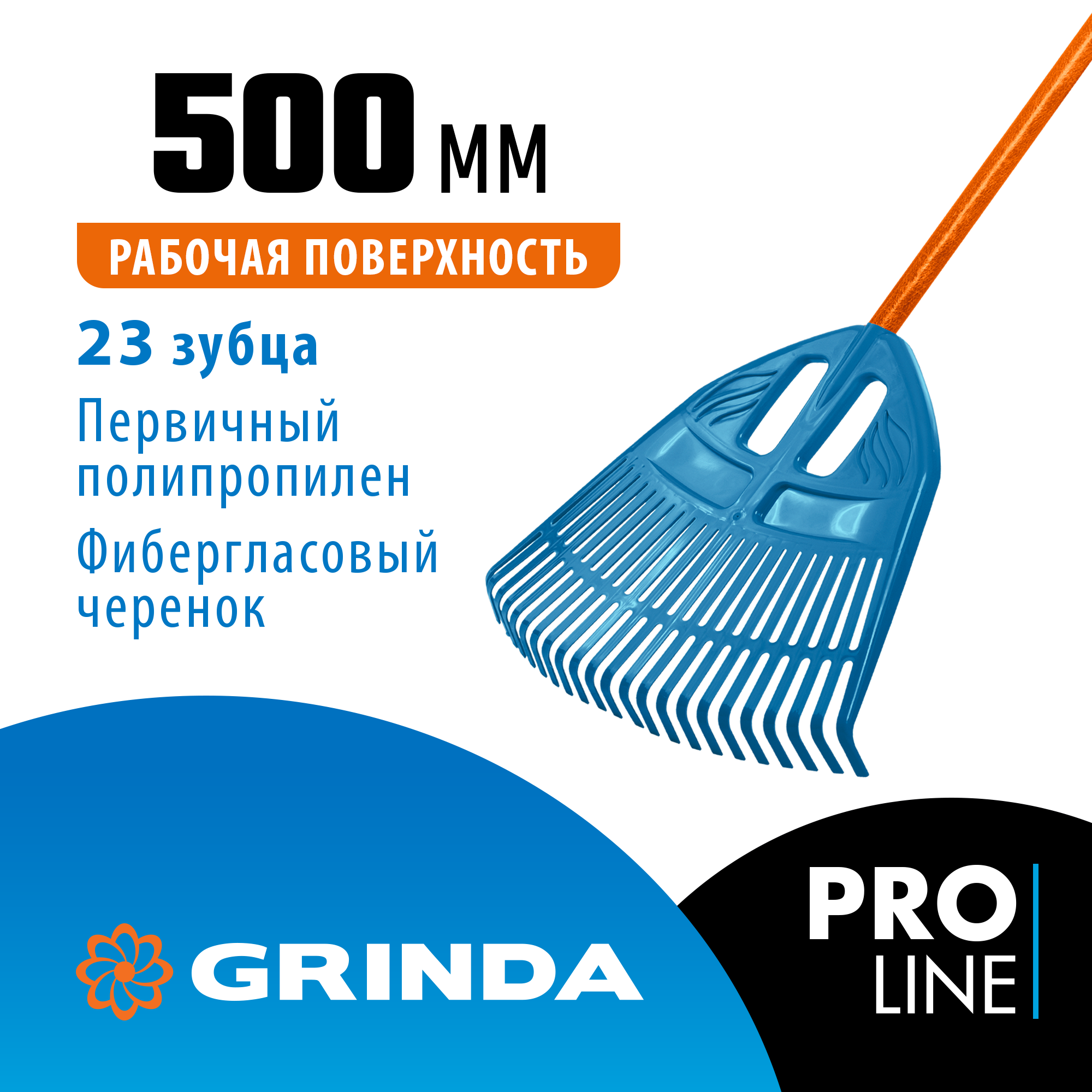 Купить GRINDA PP-23 FIBER, 23 зубца 500 х 50 х 1680 мм, ударопрочный пластик, фиберглассовый черенок, грабли веерные пластиковые, PROLine (421815)