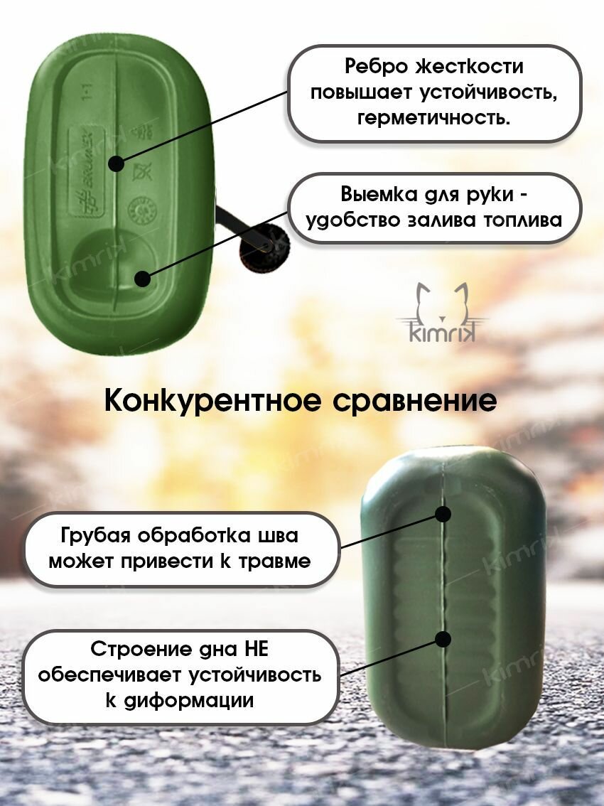 | Дополнительная информация | Все канистры снабжены крышкой с замком, предотвращающим случайное открытие и гибким гофрированным носиком, с системой "антибульк", для удобной заливки топлива через горловину бензобака автомобиля. |