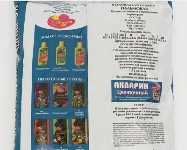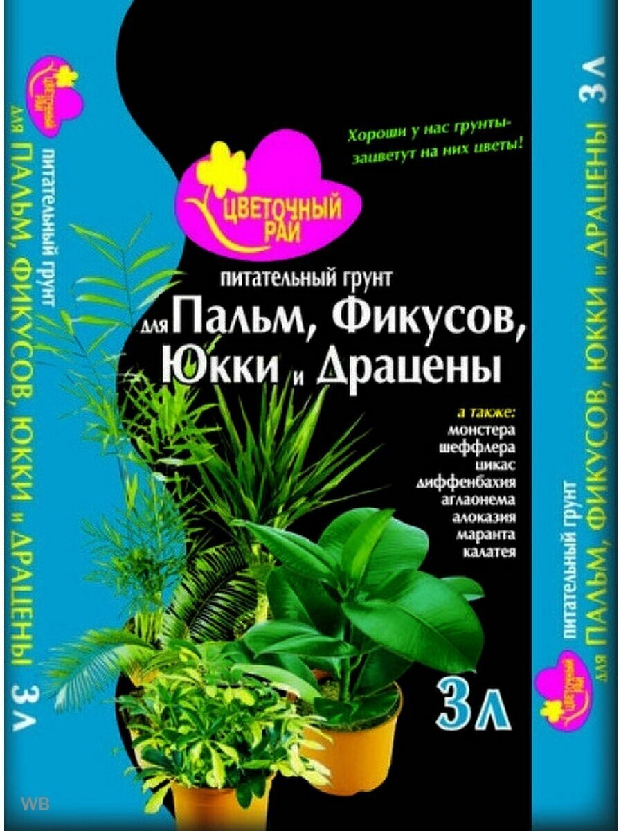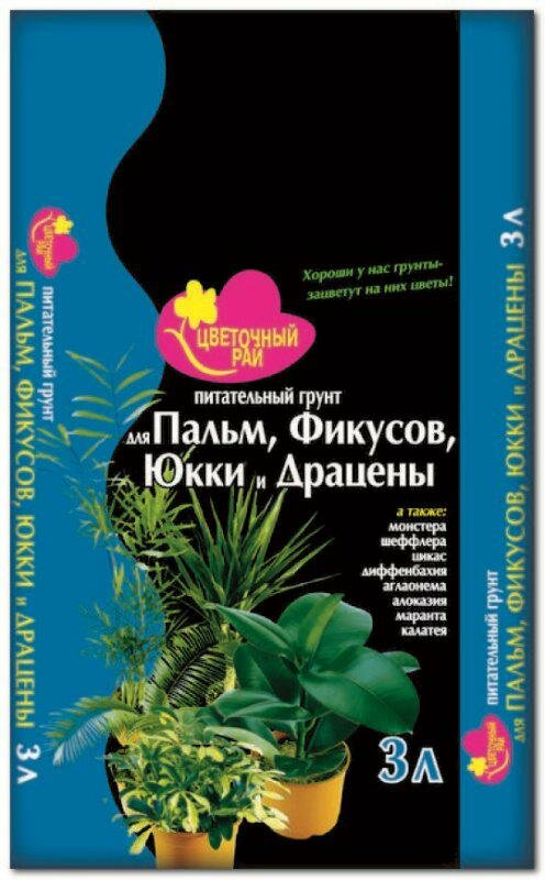 | Дополнительная информация | Почвогрунт для пальм и фикусов Цветочный рай 3л |