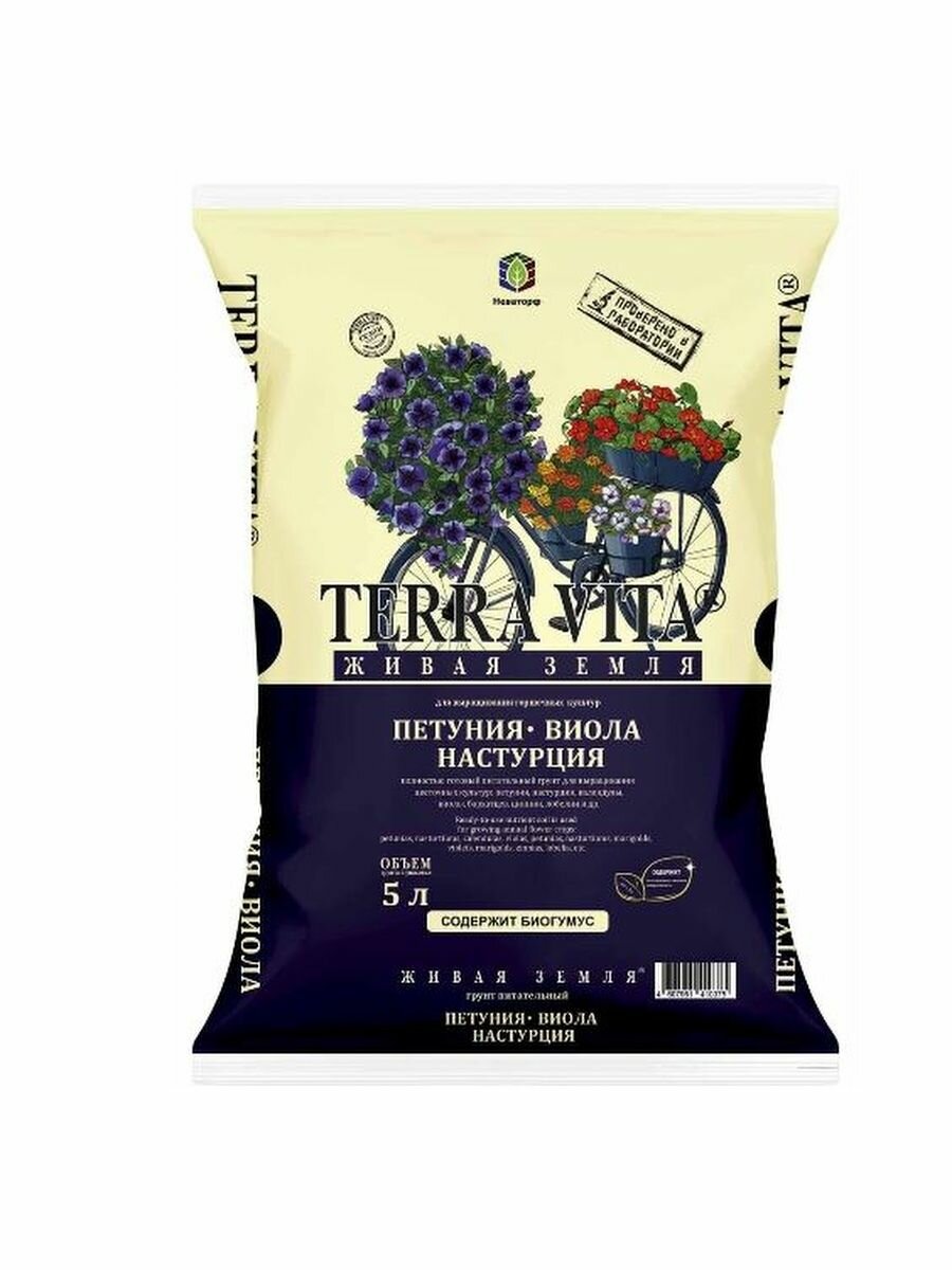 Купить Грунт Terra Vita "Живая земля (петуния, виола, настурция)" для цветов 5л