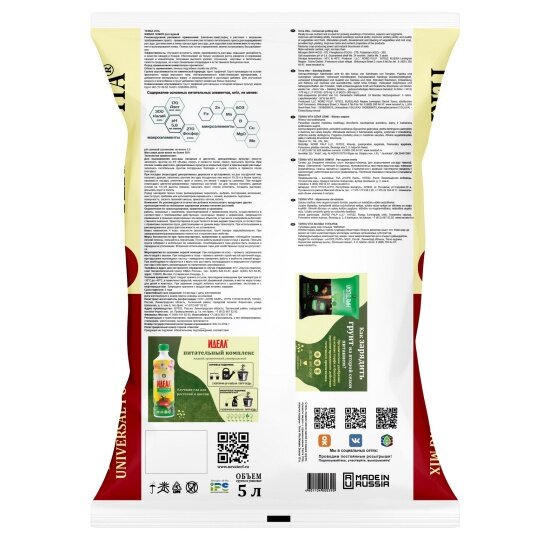 | Основные питательные вещества в мг/л, не менее | азот (NH4+NO3) - 180; фосфор (P2O5) - 300; калий (K2O) - 350; pH солевой суспензии - 6,0-6,5 |