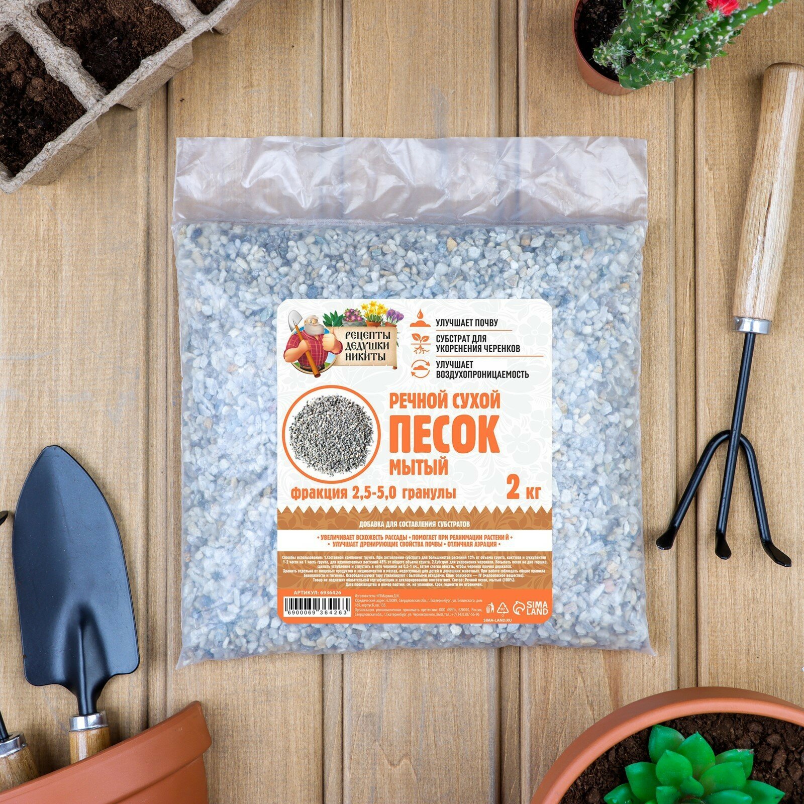 Речной песок "Рецепты дедушки Никиты", сухой, фр 0,8-1,6, 2 кг