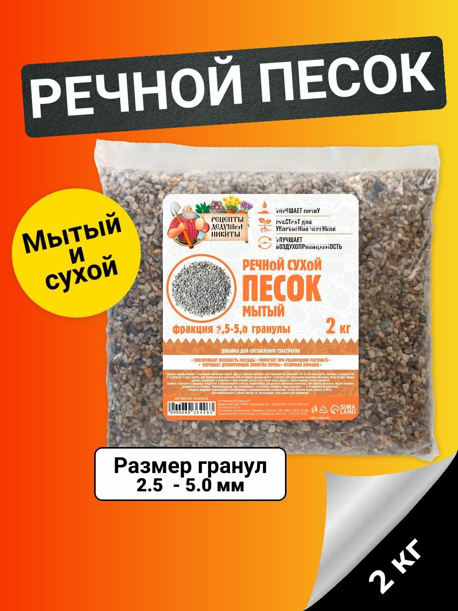 Купить Речной песок "Рецепты дедушки Никиты", сухой, фр 2,5-5,0, гранулы, 2 кг 6936426