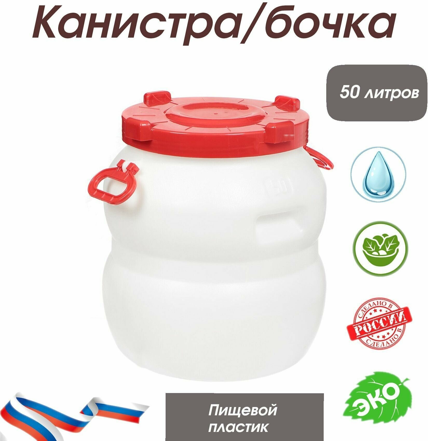Канистра бочка 50л с широким горлом с навесными ручками белая