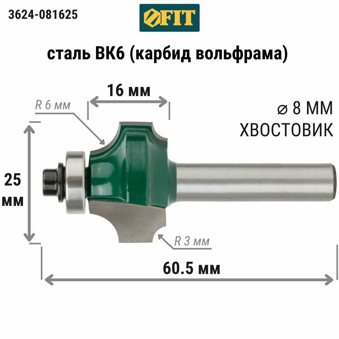 Фреза FIT 3624-081625 кромочная калевочная с подшипником DxHxL=25х16х60,5мм