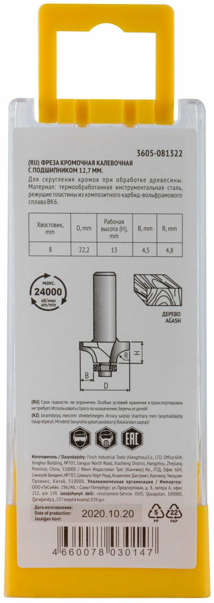 СохранитьФреза кромочная калевочная с нижним подшипником 22.2x13x55 мм FIT 3605-081322 интересное: