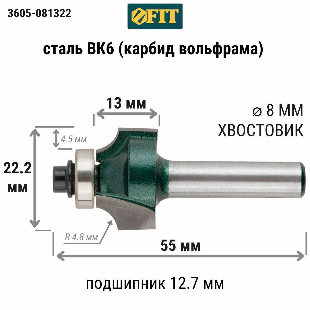 Фреза кромочная калевочная с подшипником (22,2х13х55 мм) FIT