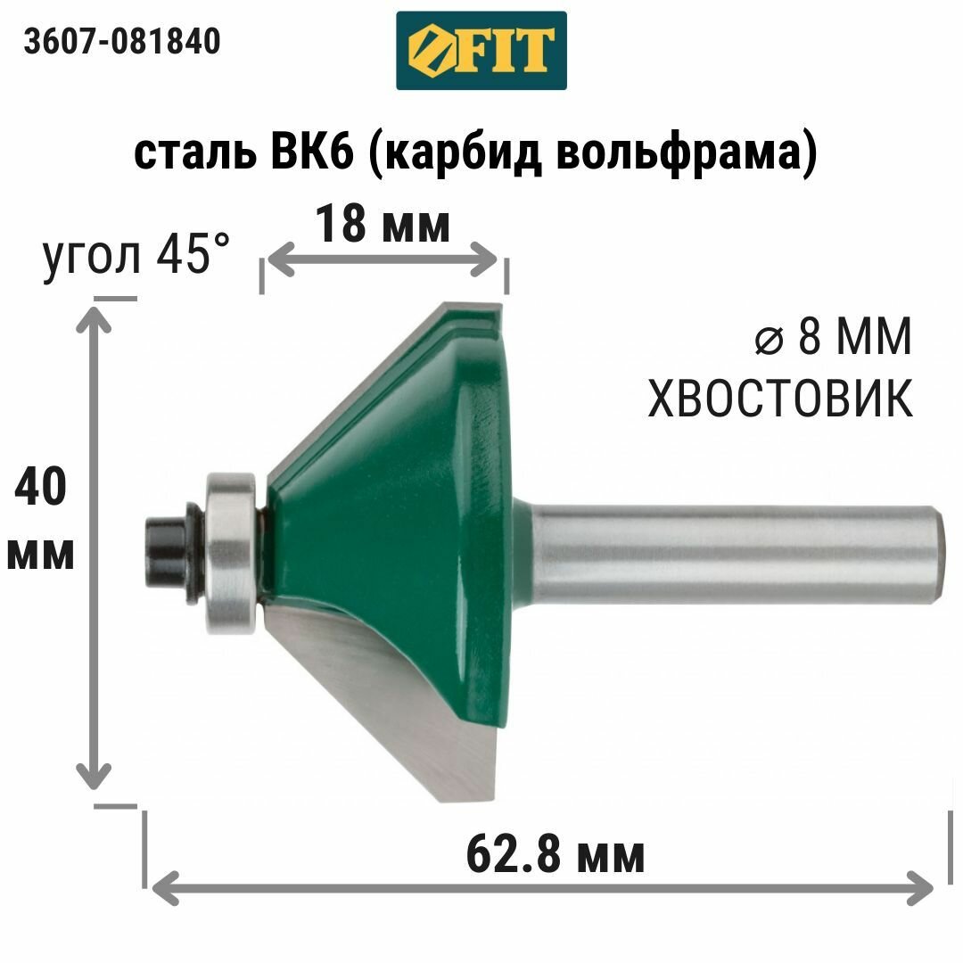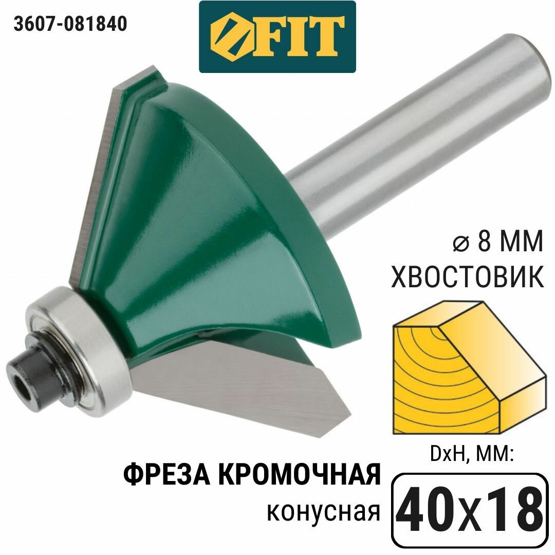 Купить Фреза FIT кромочная конусная с подшипником DxHxL=40х18х62,8мм(3607-081840)