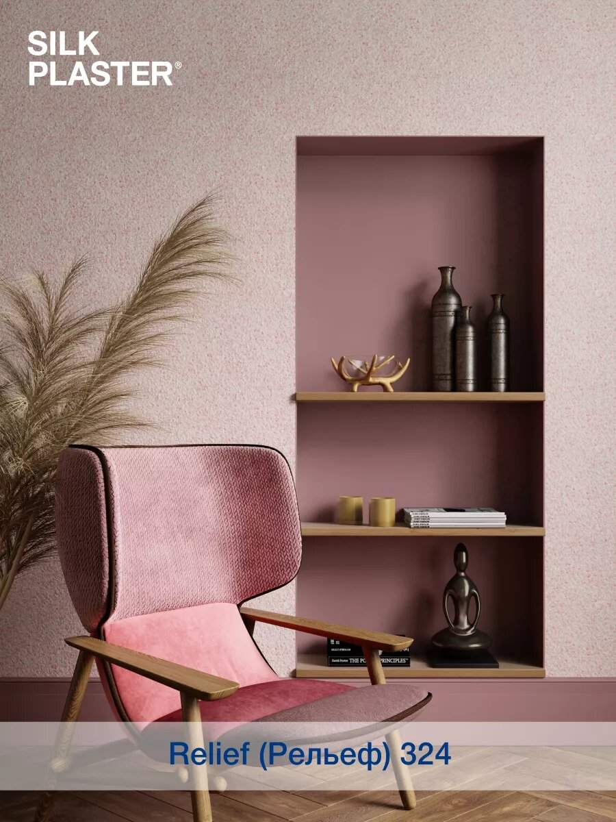 Жидкие обои Silk Plaster Рельеф 324, комплект 3 шт (до 9 кв.м) розовый