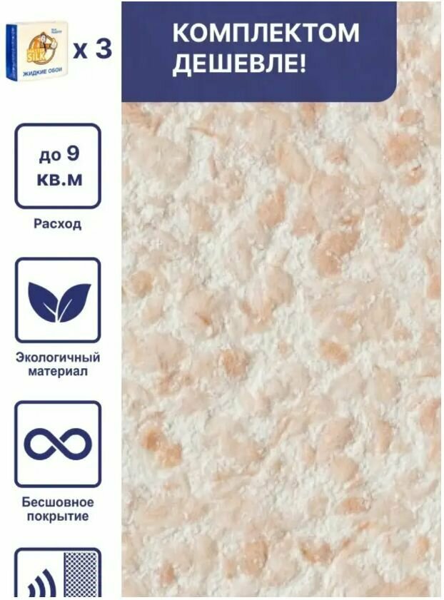 СохранитьЖидкие обои Silk Plaster Рельеф 327, комплект 3 шт (до 9 кв.м) светло- оранжевый интересное:
