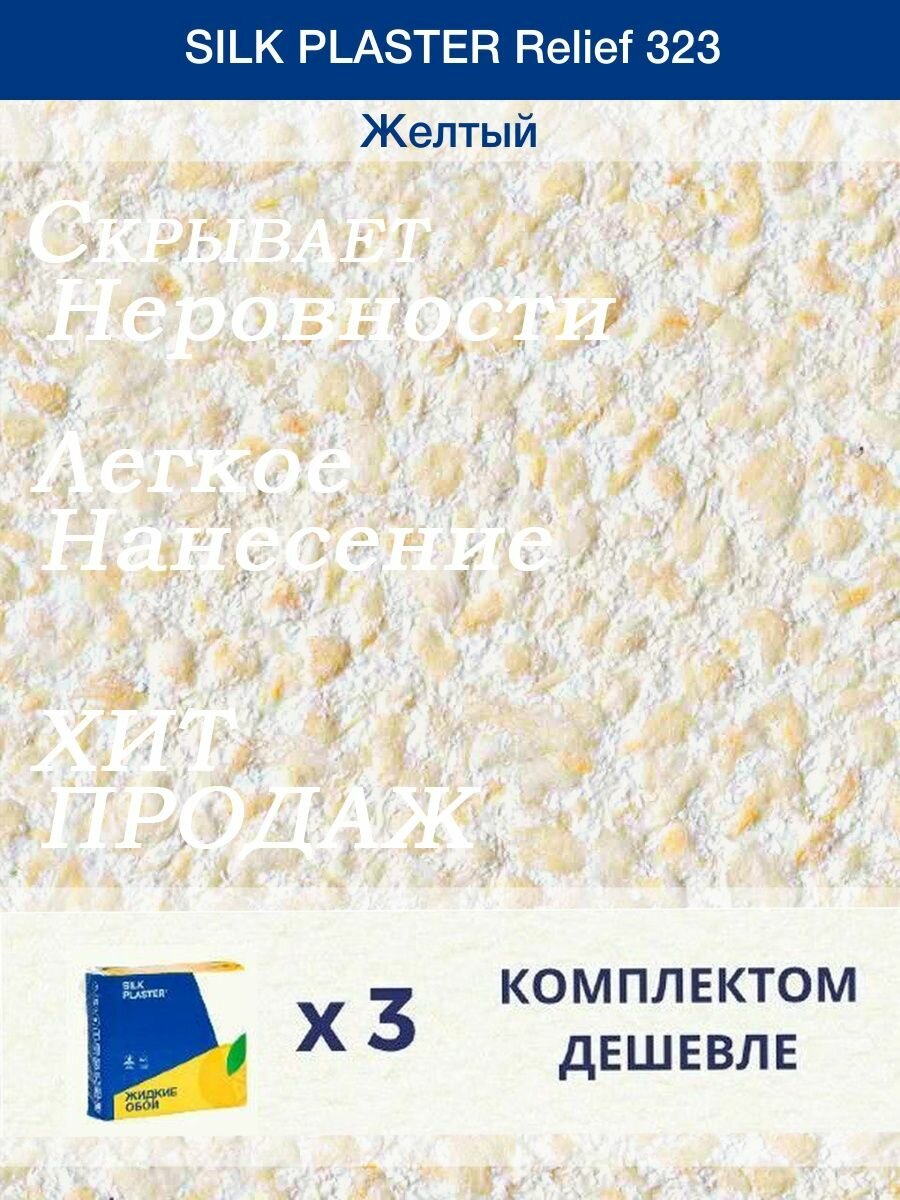 СохранитьЖидкие обои Silk Plaster Рельеф 323, комплект 3 шт (до 9 кв.м) желтый интересное: