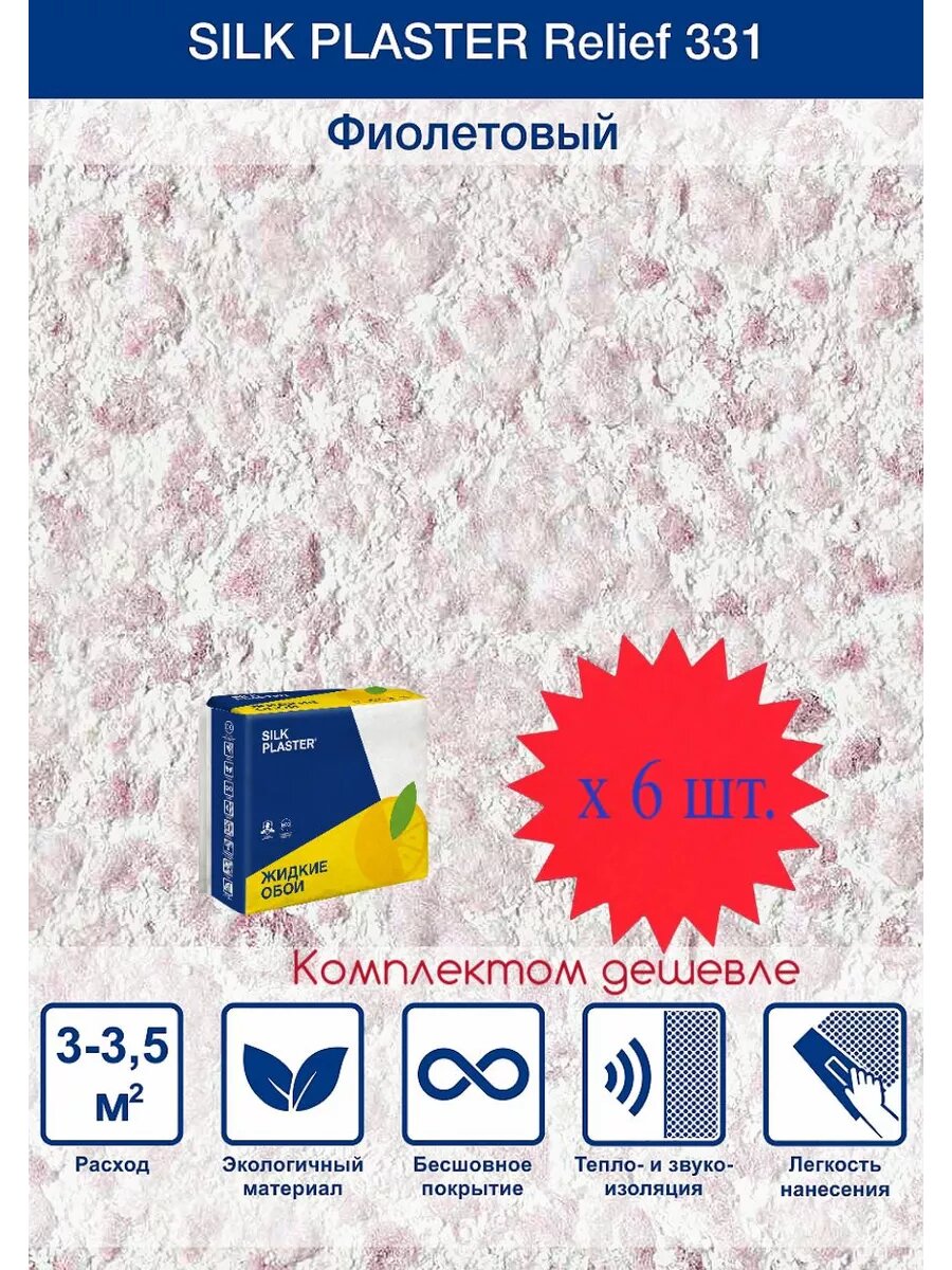 Ниже Вы можете прочитать отзывы на Жидкие обои Silk Plaster Рельеф 331, комплект 6 шт (до 18 кв.м) фиолетовый, ознакомится с подробными характеристиками, посмотреть интересные обзоры и фотографии на Жидкие обои Silk Plaster Рельеф 331, комплект 6 шт (до 18 кв.м) фиолетовый.