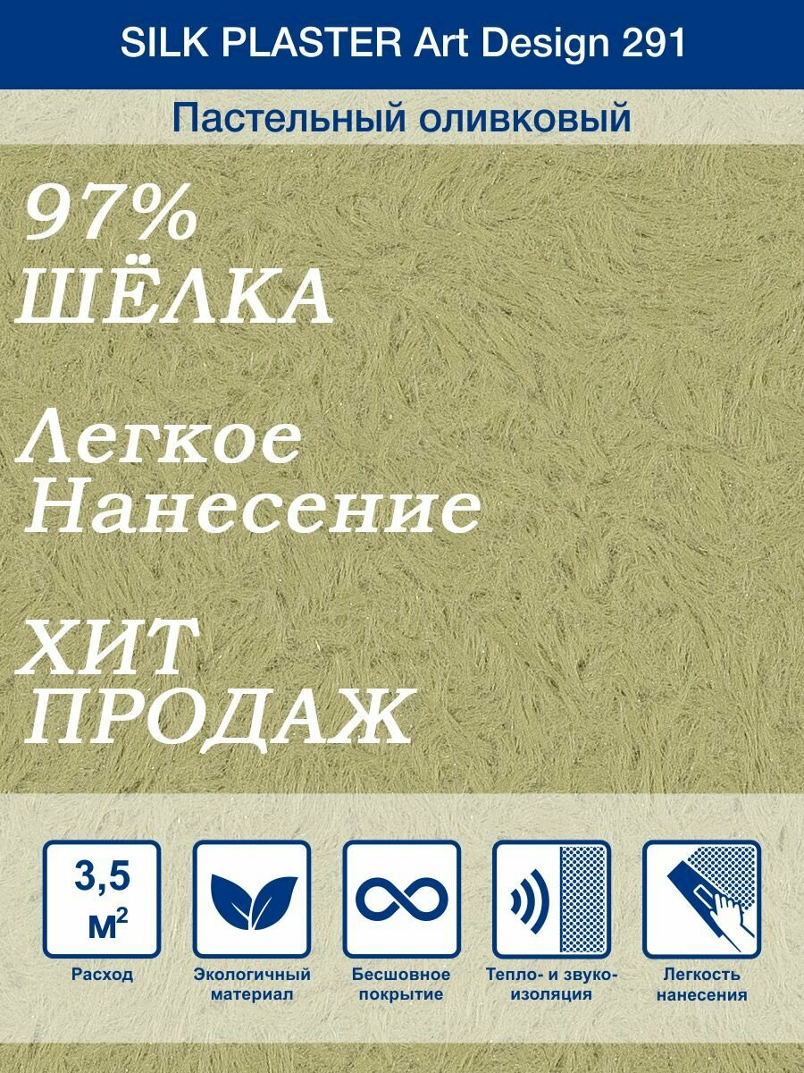 Жидкие обои Silk Plaster Арт Дизайн 291 шелк, комплект 6шт (до 21кв. м) пастельный оливковый