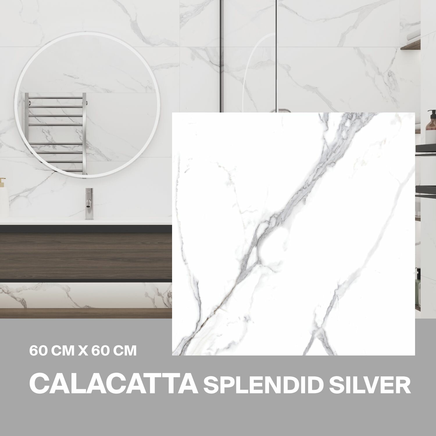Керамогранит Ceradim Calacatta Splendid Silver белый 60х60 Полированный, в упаковке 1.44 м2. (4 плитки)