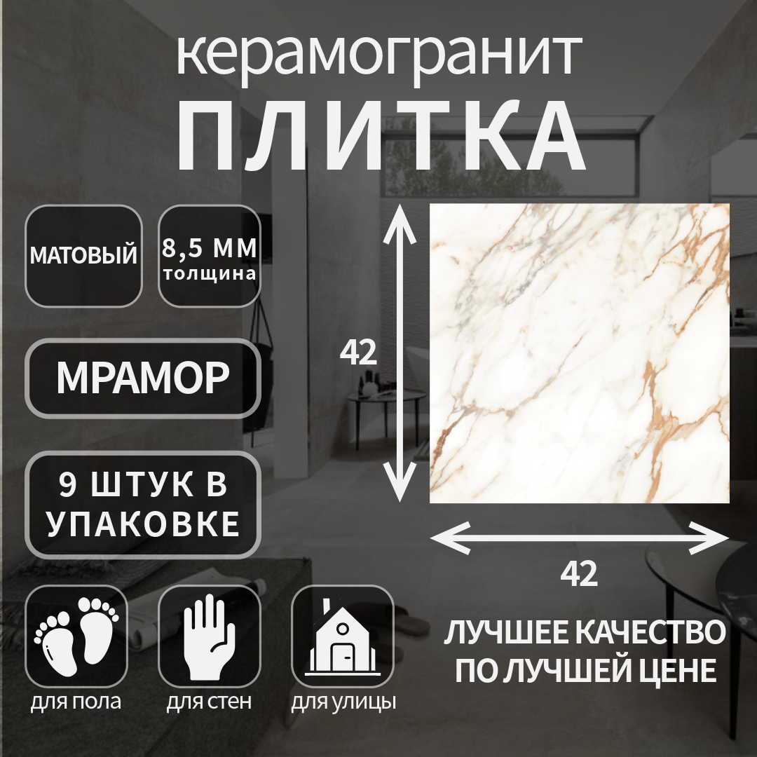 Керамогранитная плитка Cersanit, коллекция: Mirage белый, эффект: мрамор, поверхность: матовый, 42х42х0.85;