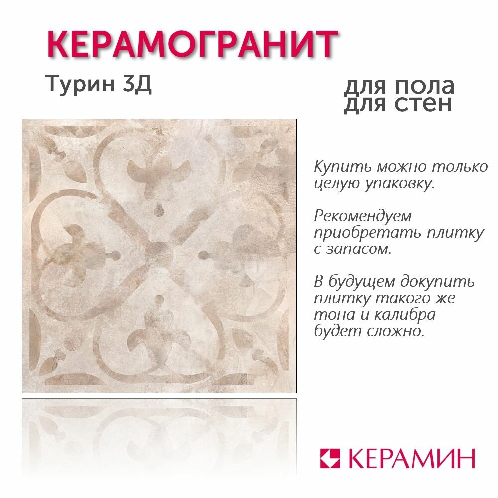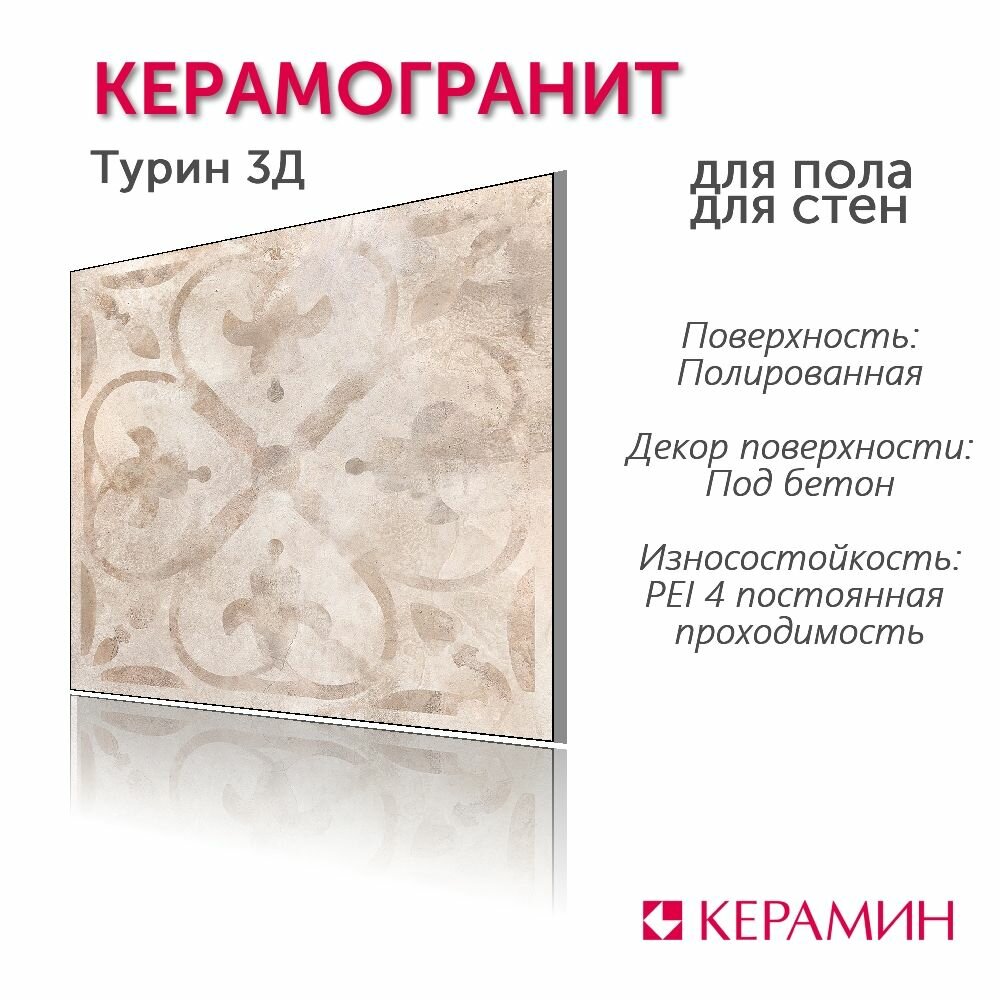 Керамогранит Турин 3Д 60x60 см (4 шт 1,44 м2) интересное: